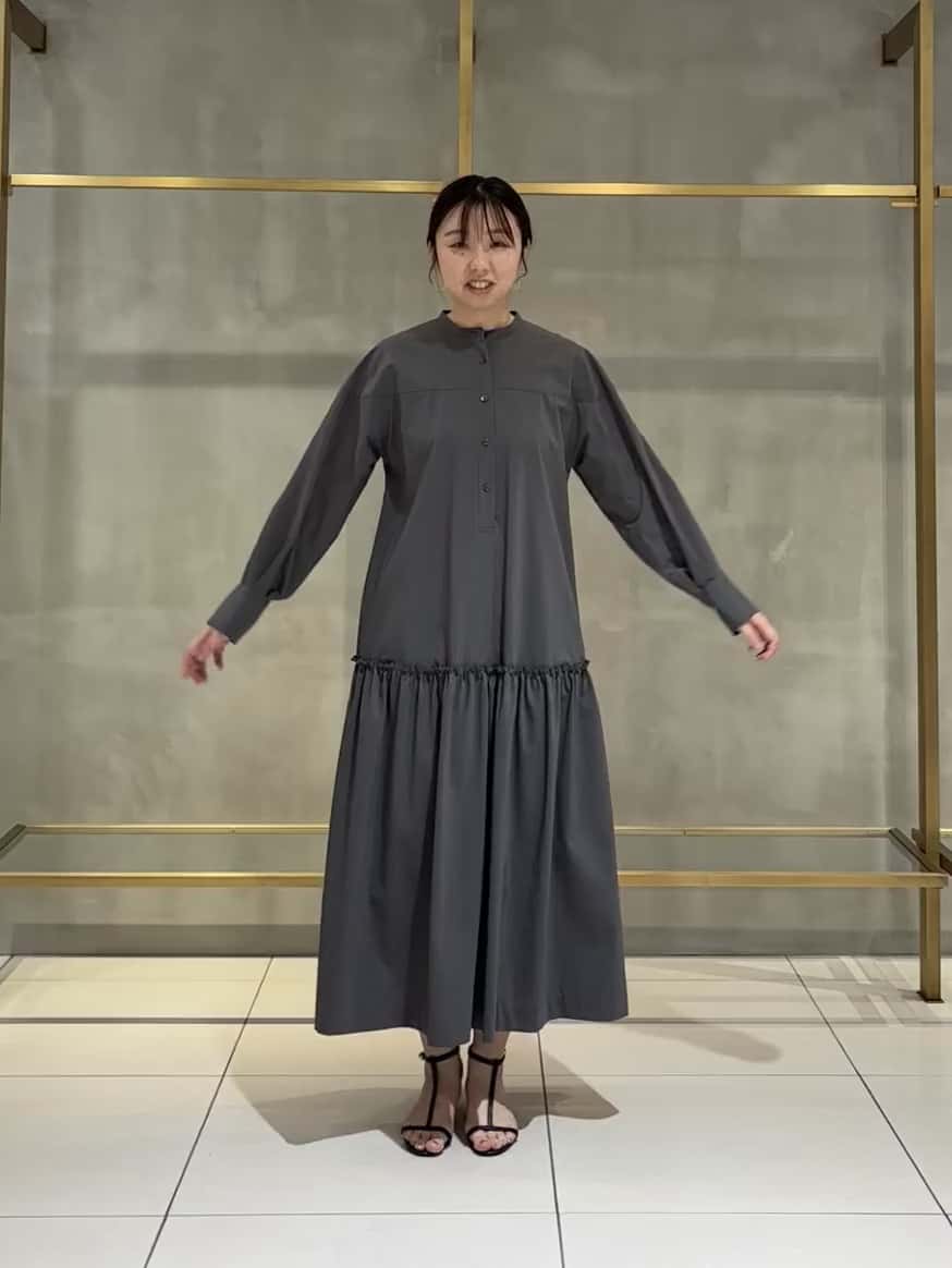 バンドカラーに裾はフレアで切り替えた、デザインワンピースです。