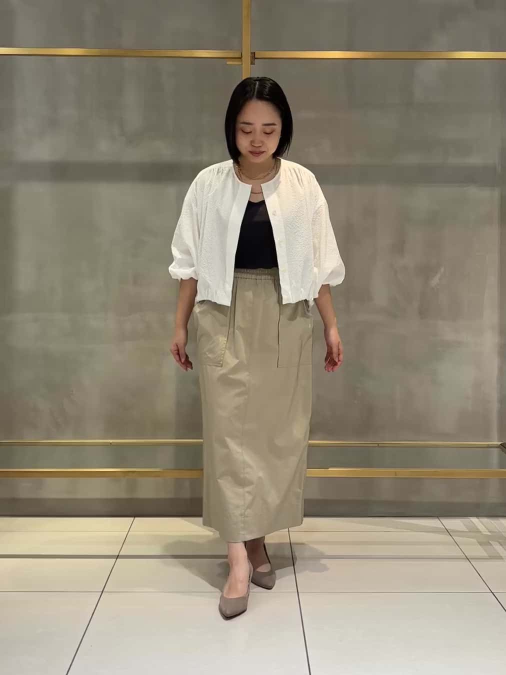 インナーはグレーのタンクトップで全体を引き締めました。