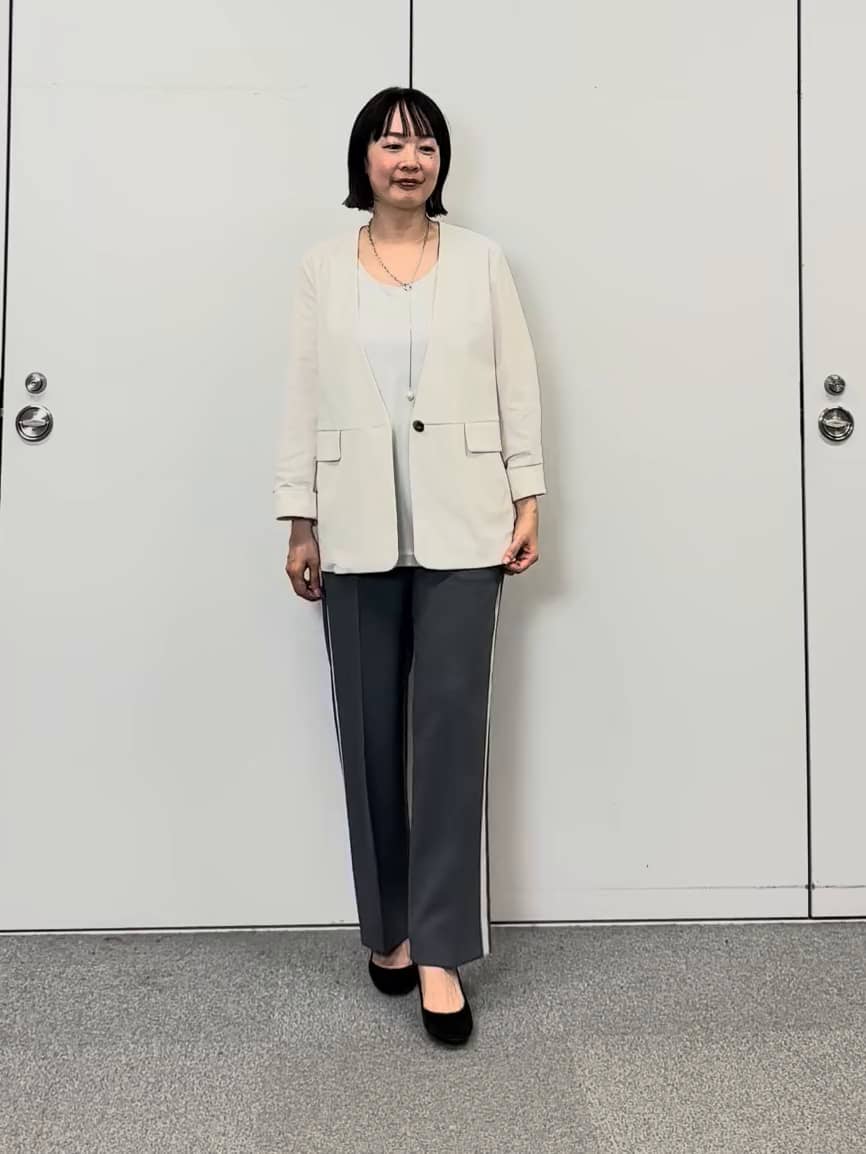 今回はラインがポイントの美脚パンツを合わせました。
