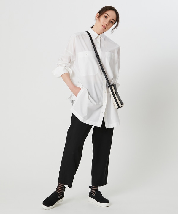 トレンド感のある長めのブラウスに印象的な春カラーの柄スカートを合わせました。柄物も大人っぽく取り入れやすいのでおすすめです。オーバーサイズのブラウスは気になる所もカバーしてくれます♪