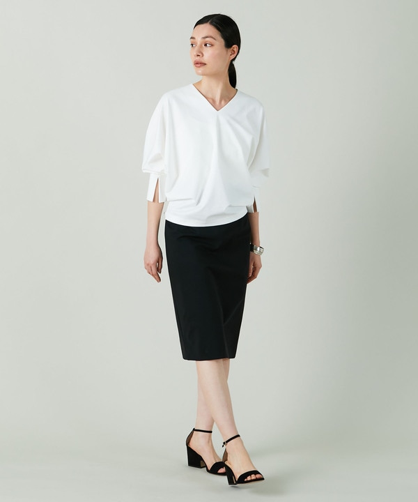 ドルマンスリーブのトップスを合わせたきれいめな