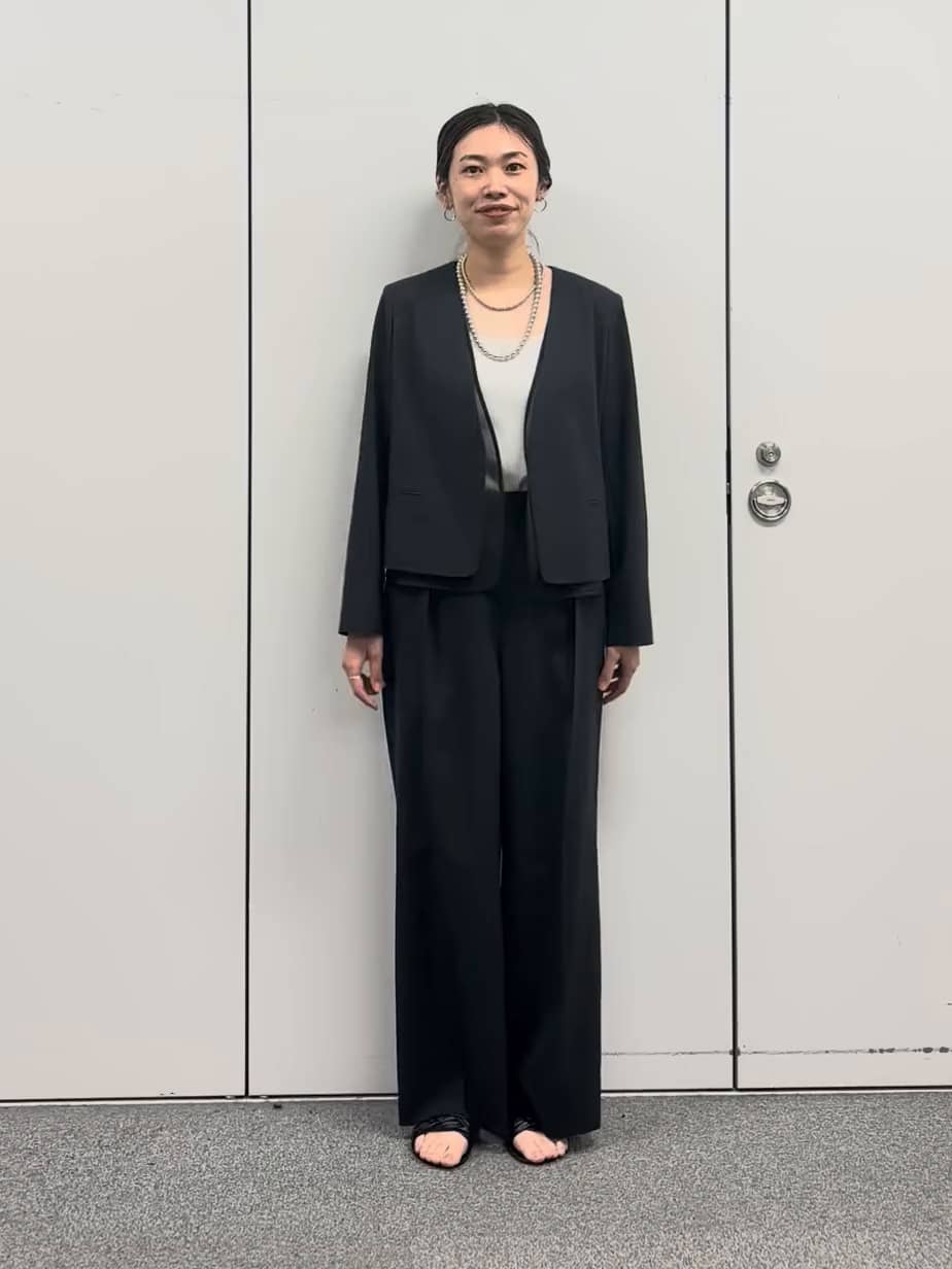 ノーカラージャケットとセミワイドパンツのセットアップは、
