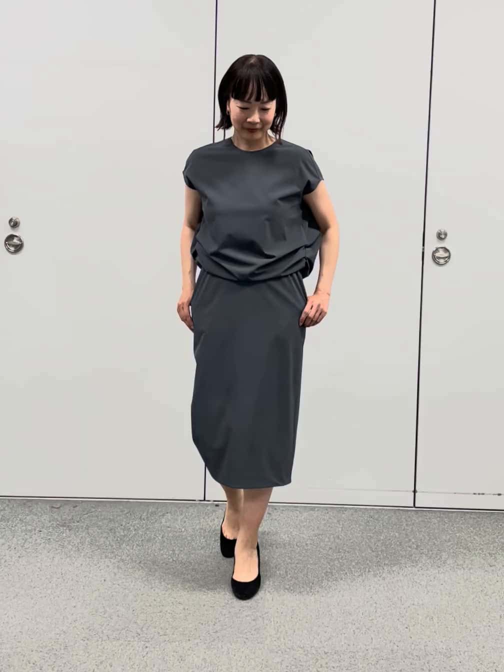 トップスとスカートがセットになった2ピース風のデザインワンピースです。
