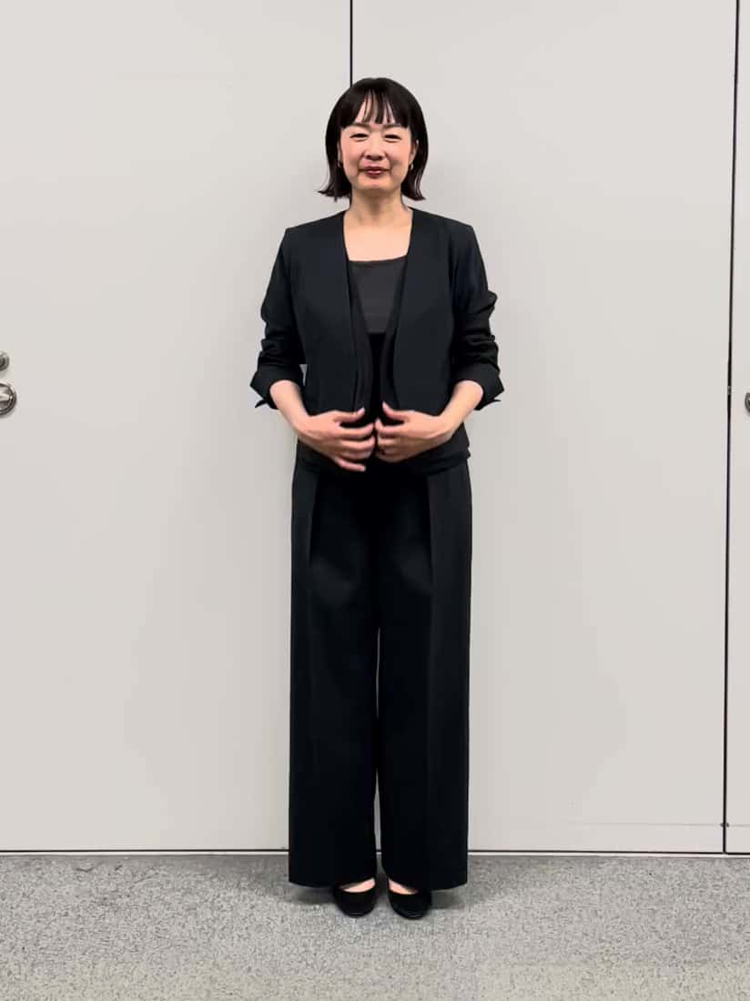 セットアップでの着用がおすすめです。とても華奢見えするジャケットでスタイルアップして