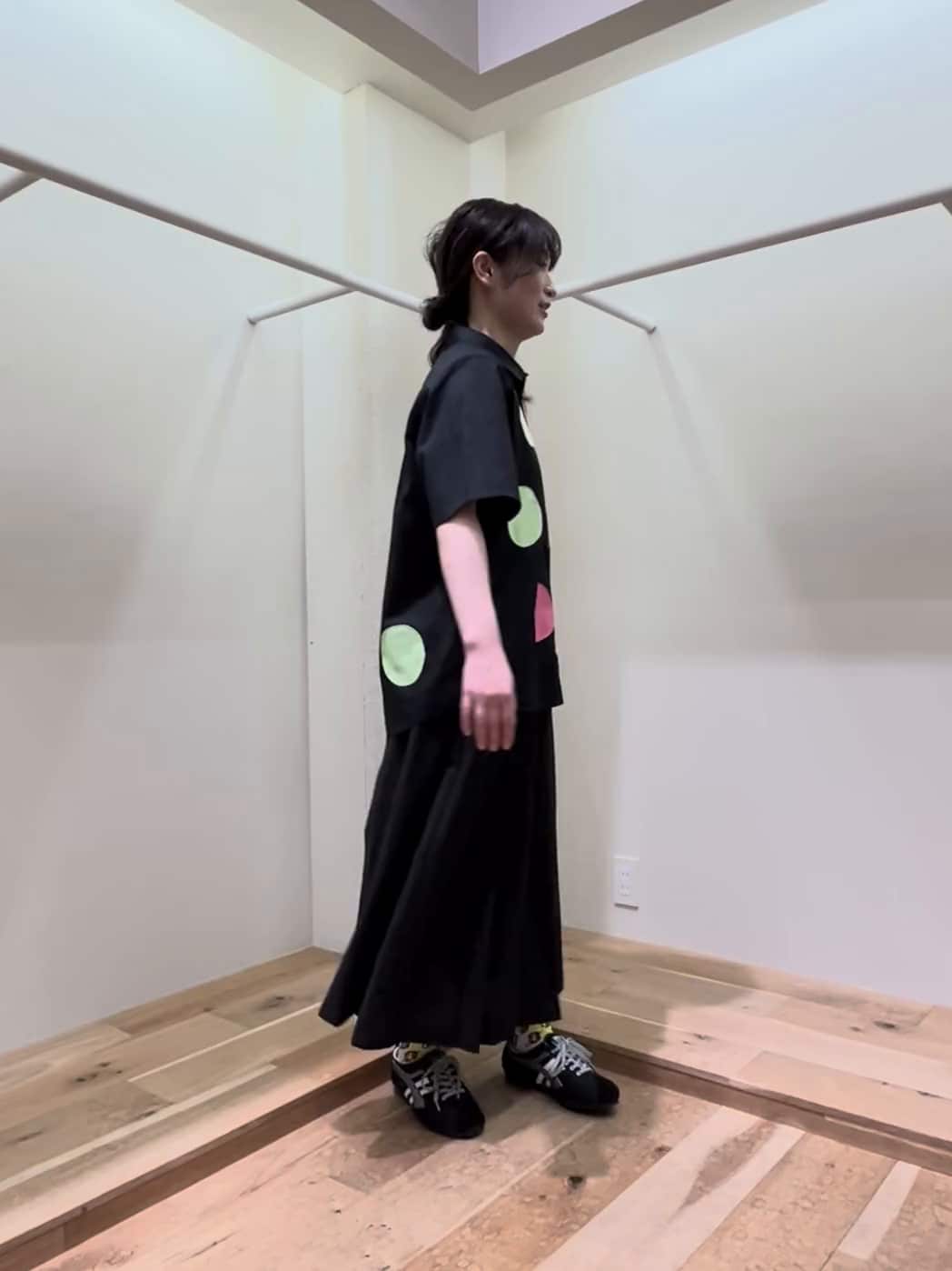 着用感:フラボアらしい大きなドットパーツが目を引く半袖シャツです。
