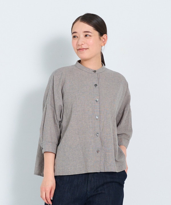 無地見えする、グレンチェックのジャケットとブラウスをセットで着用しました。 とろみのあるパンツとあえて合わせ、程良いキレイ目ナチュラルにバランスを整えました。