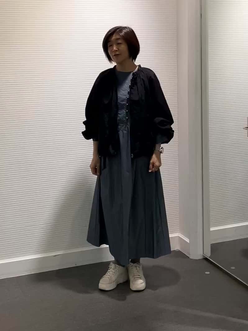 タイプライターのハリのあるマキシワンピースに、人気のギャザーブルゾンを羽織りました!