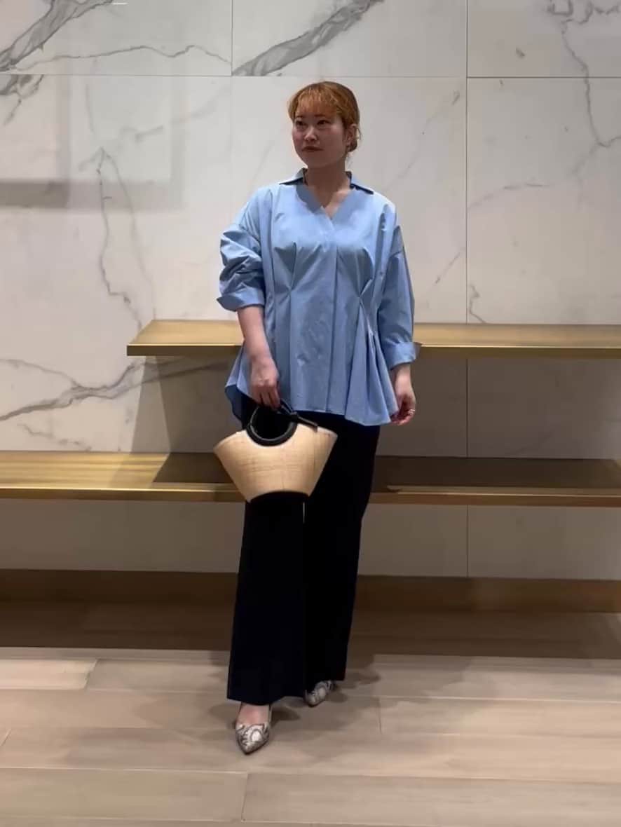 身ごろにタックが入ったウエストが少しシェイプしたシャツブラウス。