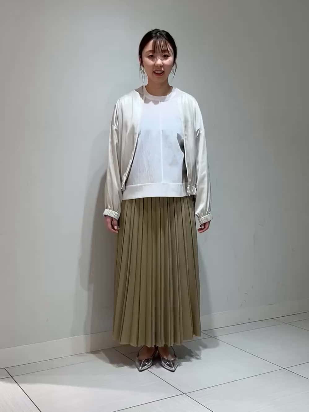 人気のタフタのプリーツスカートを合わせました。