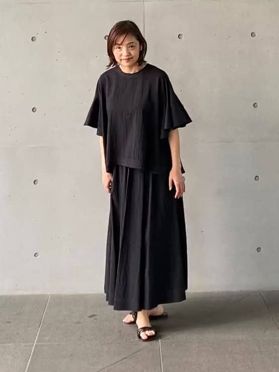 前後差のあるフレアシルエット、袖のドレープデザインは、同素材のスカートにバランスがピッタリ計算されています。