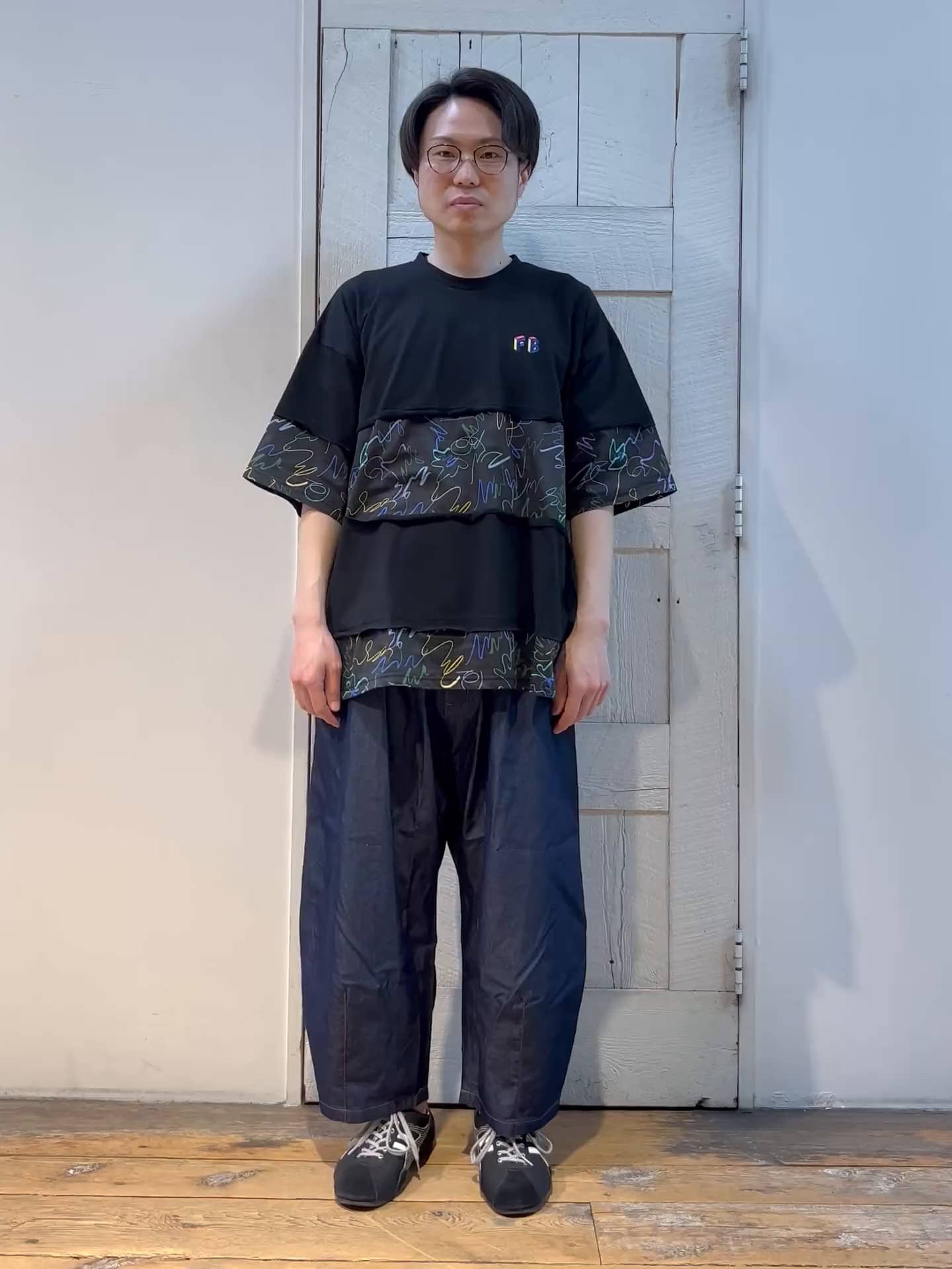 ゆったりとしたデザインですが、程よい着丈でルーズ過ぎないシルエットになっております。
