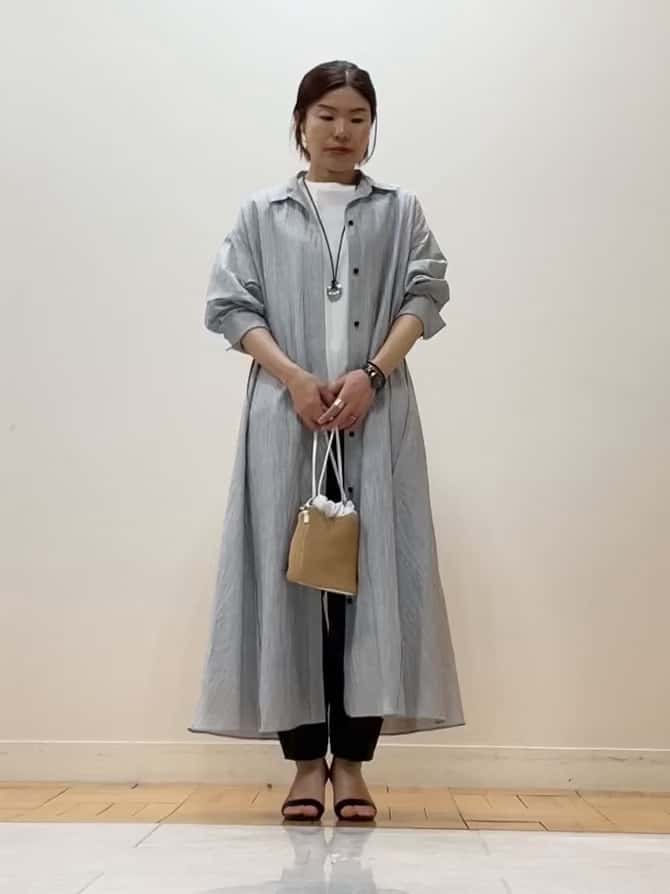 インナーにはシンプルな白のカットソーを入れて、ワンピースの細いストライプを引き立ててみました。