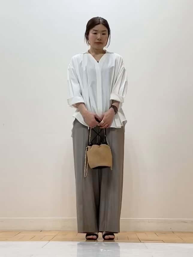 身頃にタックディティールを入れたシャツブラウスは、ウエストマークをしているような印象で、スタイルアップが叶います。