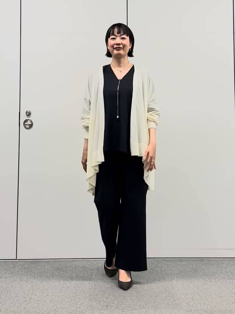 カーディガンは、軽さがあり、しなやかで着るとドレープががきれいに入ります。