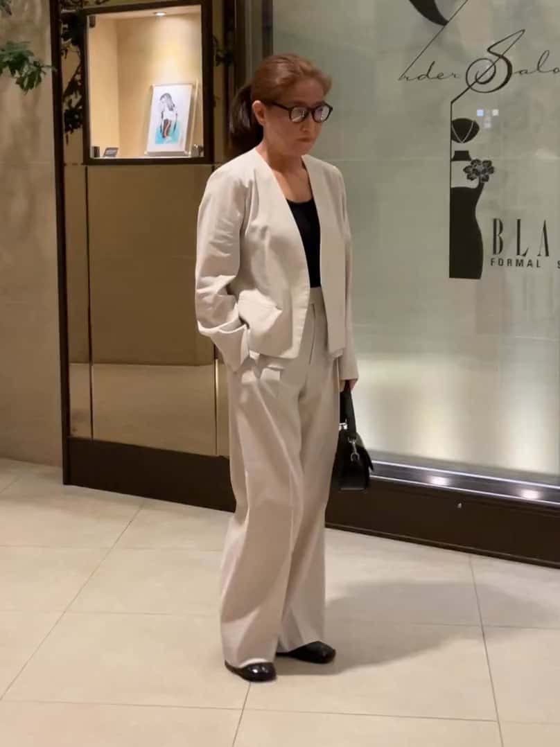 キナリの清涼感のあるショートジャケットとワイドパンツのセットアップです。
