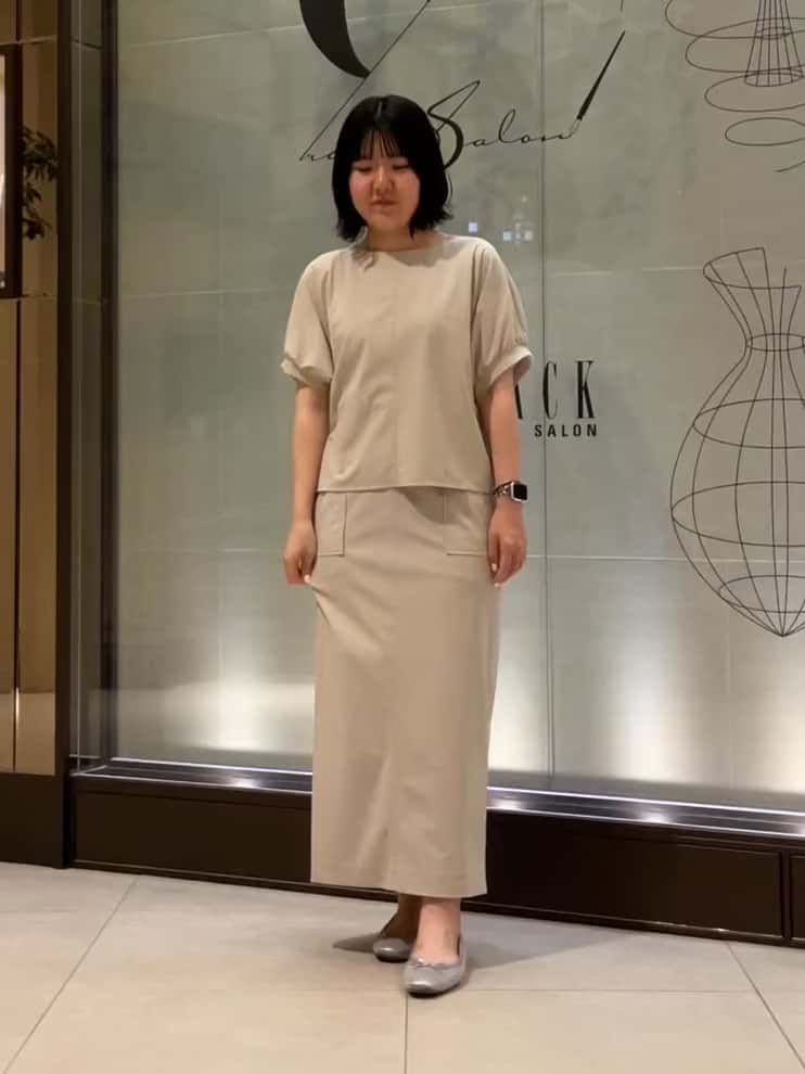 スッキリとしたIラインスカートとバランスよく合わせて、ワンピース風に。