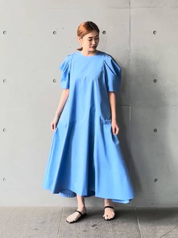 出したフレアーシルエットで、ふくらみのある袖がデザインポイントです。