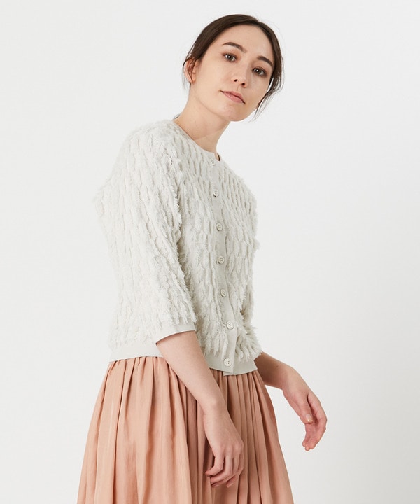 身長の高い私でもたっぷりとした分量感で着られるワンピース。優しいカラーで甘くなりすぎないピンク色がお気に入りです!そのままでもいいですが、フリンジデザインのカーディガンをさっと肩にかけ、女性らしい上品さをプラスしました。