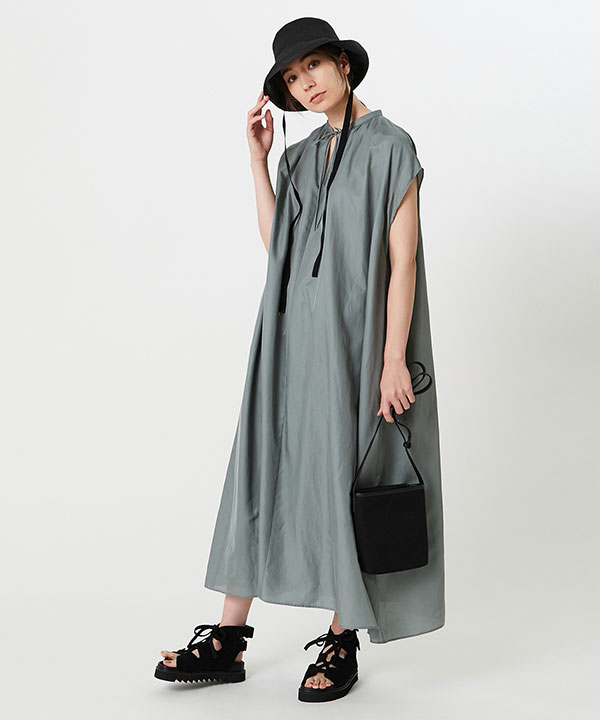 色味がきれいなワンピースはゆったりめのシルエット。