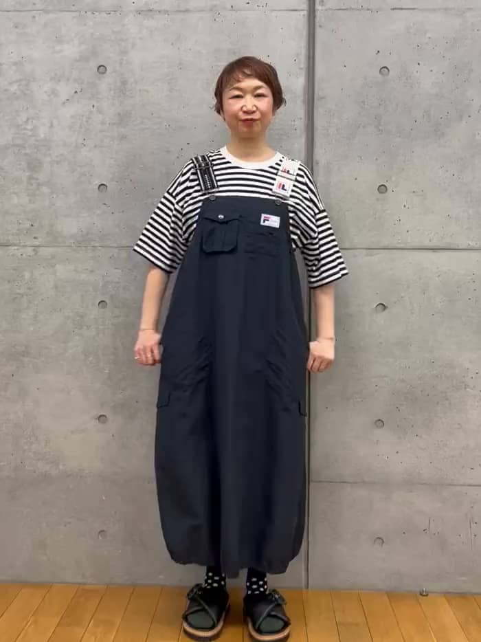 着用感 : ナイロン素材で軽い着心地が特徴のジャンパースカート。