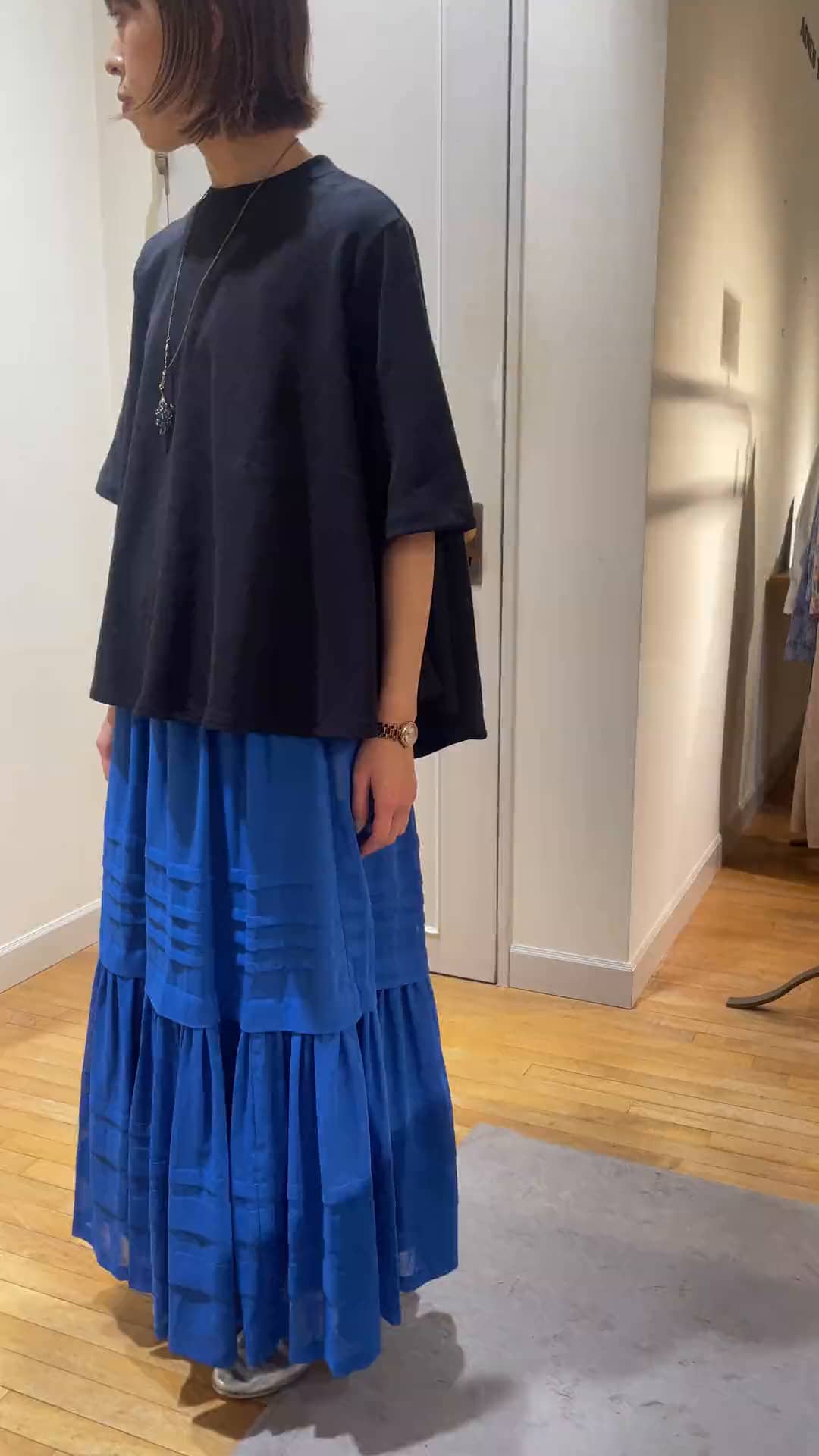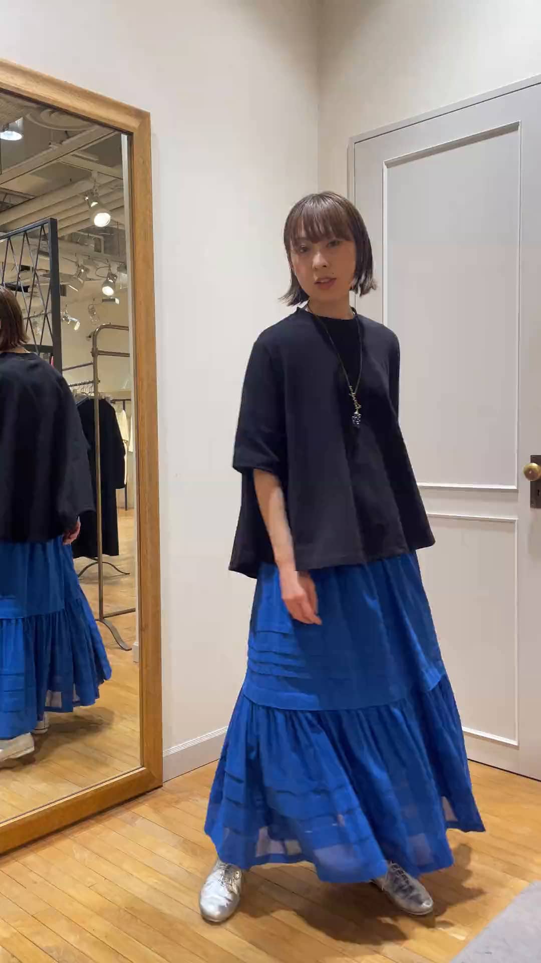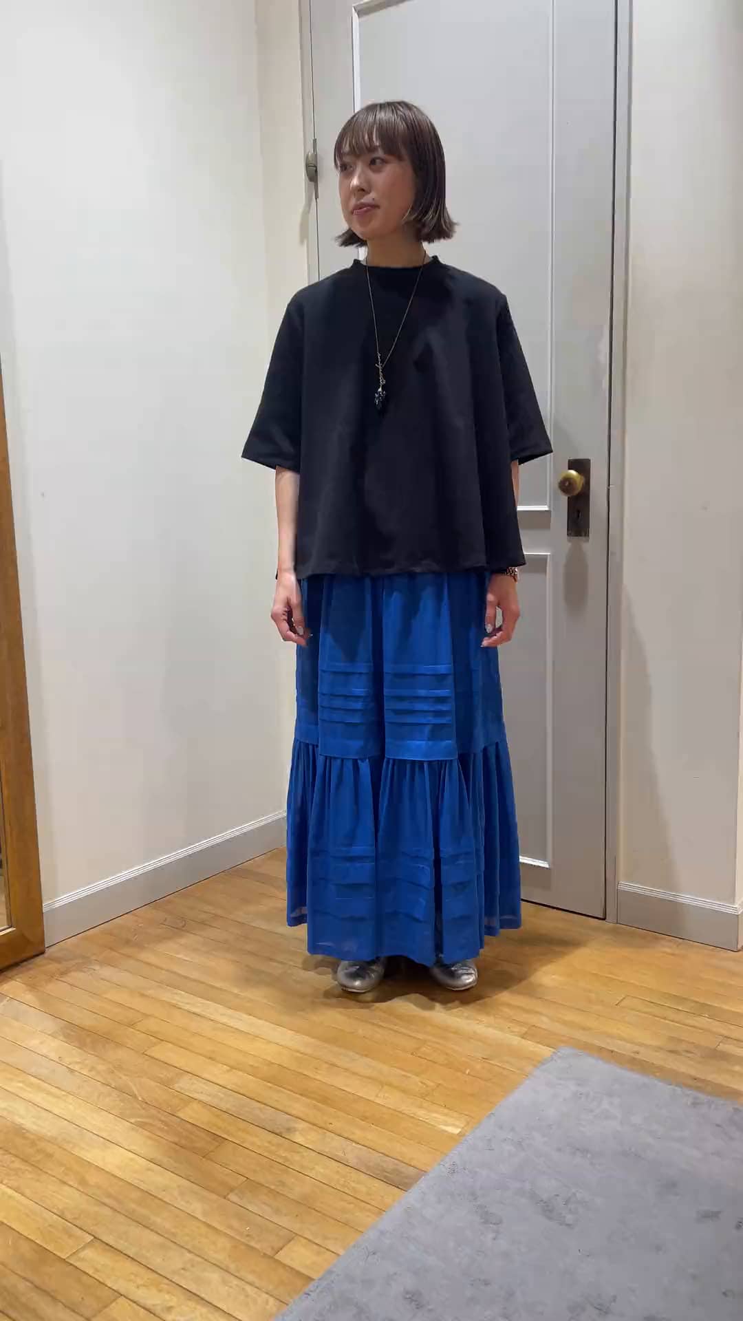 綺麗なドレープが目を惹くカットソー👀着用のブラックはコットンミニ裏毛を使用。一見厚手に見えますが、サーキュラーシルエットで風通しが抜群なので初夏にぴったり!