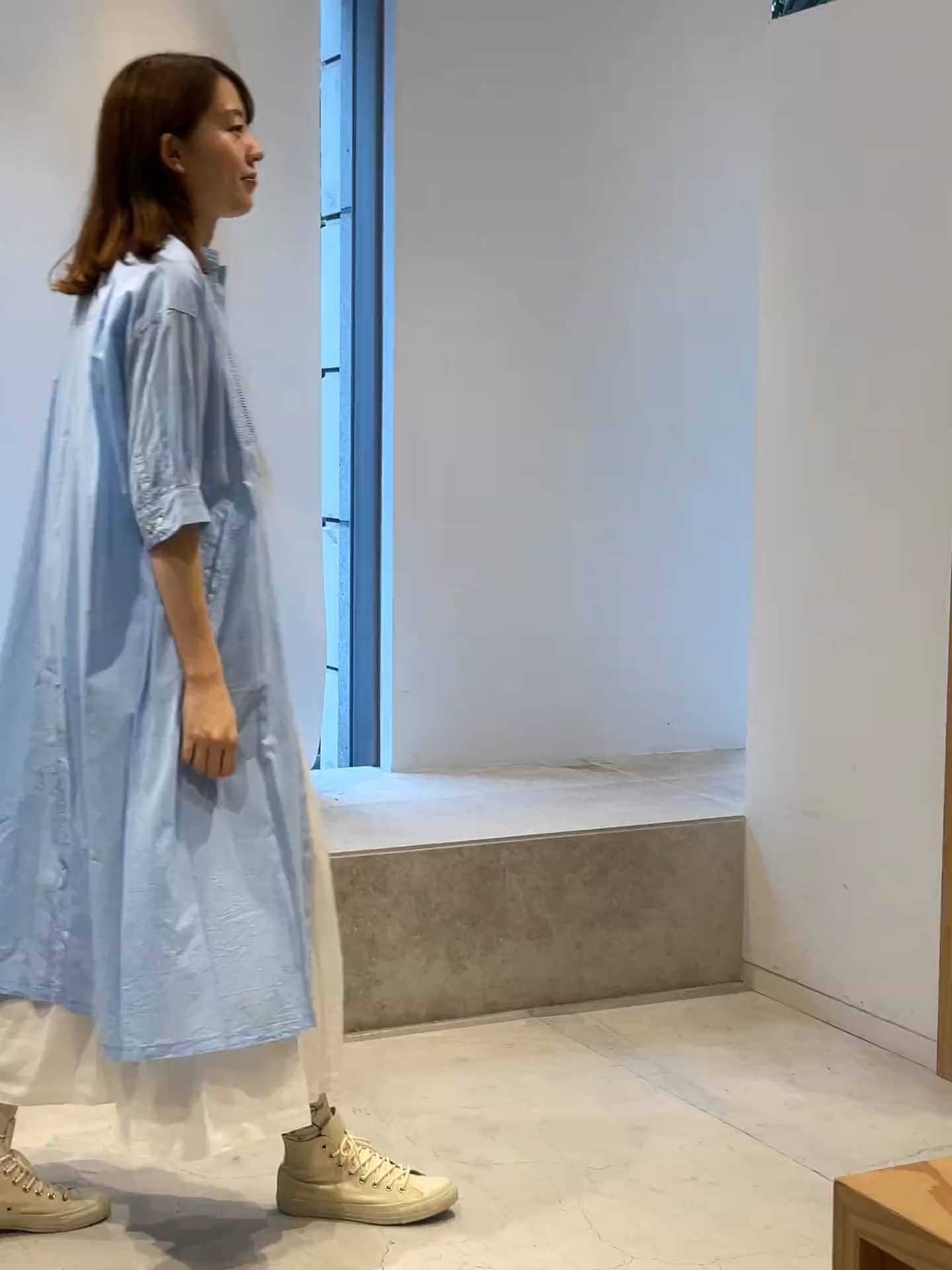 前開きなので羽織り風にして、Tシャツやスカート合わせも。