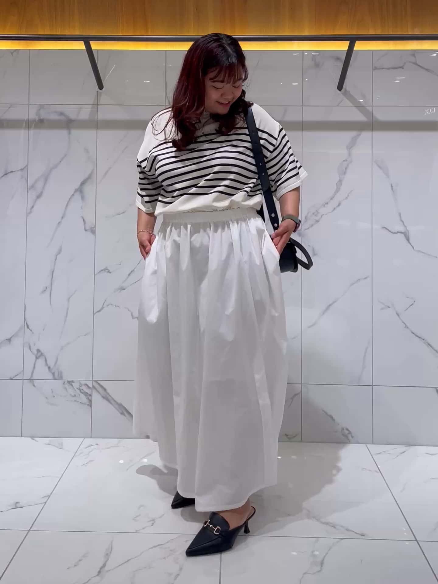 トップスはすっきりと、スカートはほどよくボリュームのあるデザインで