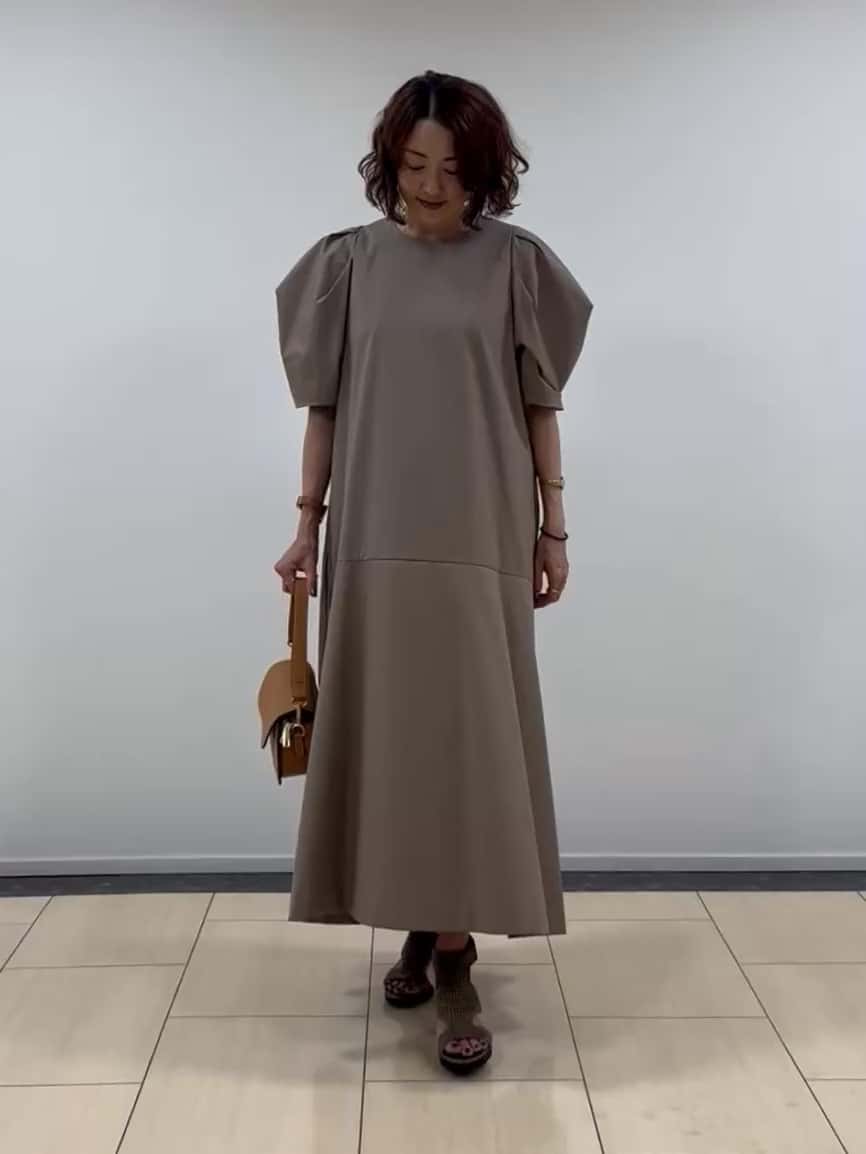 ハリ感のある素材と立体的なパフスリーブが印象的なワンピースは、