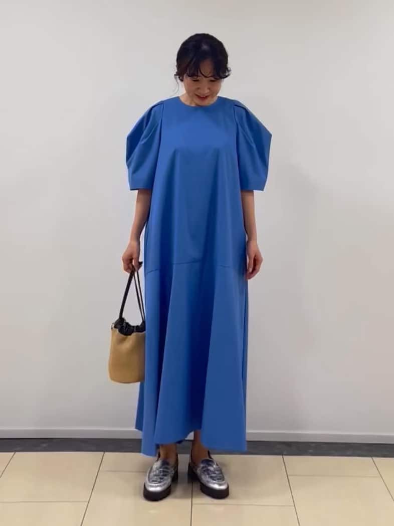女性らしいパフスリーブと裾の切り替えがポイントのサマーワンピース。