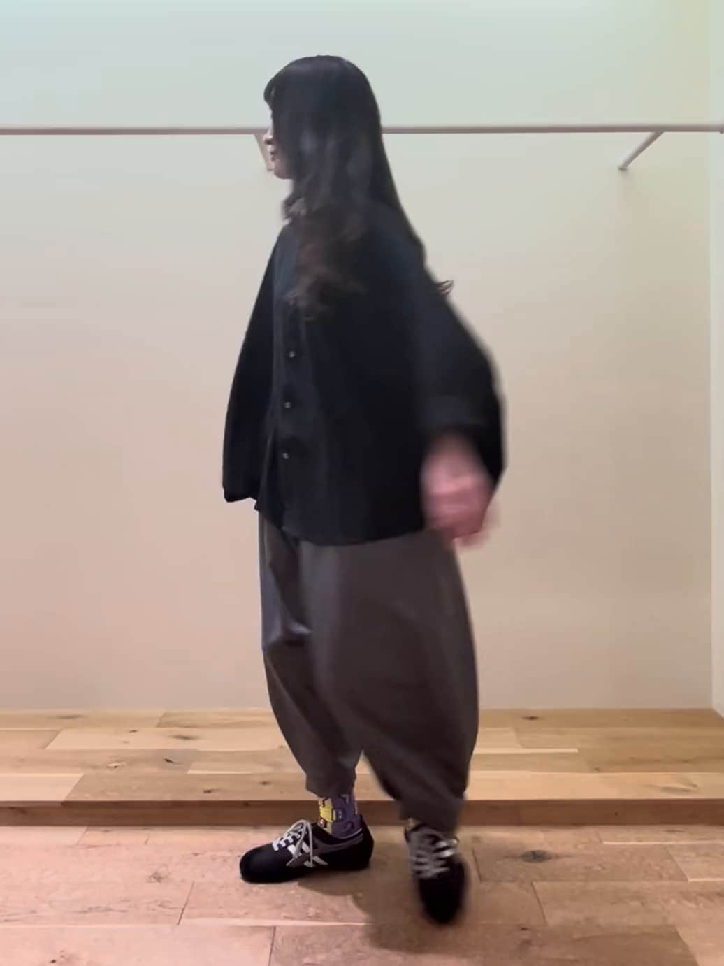 着用感:生地をたっぷり使用した楽な履き心地のサルエルパンツ。