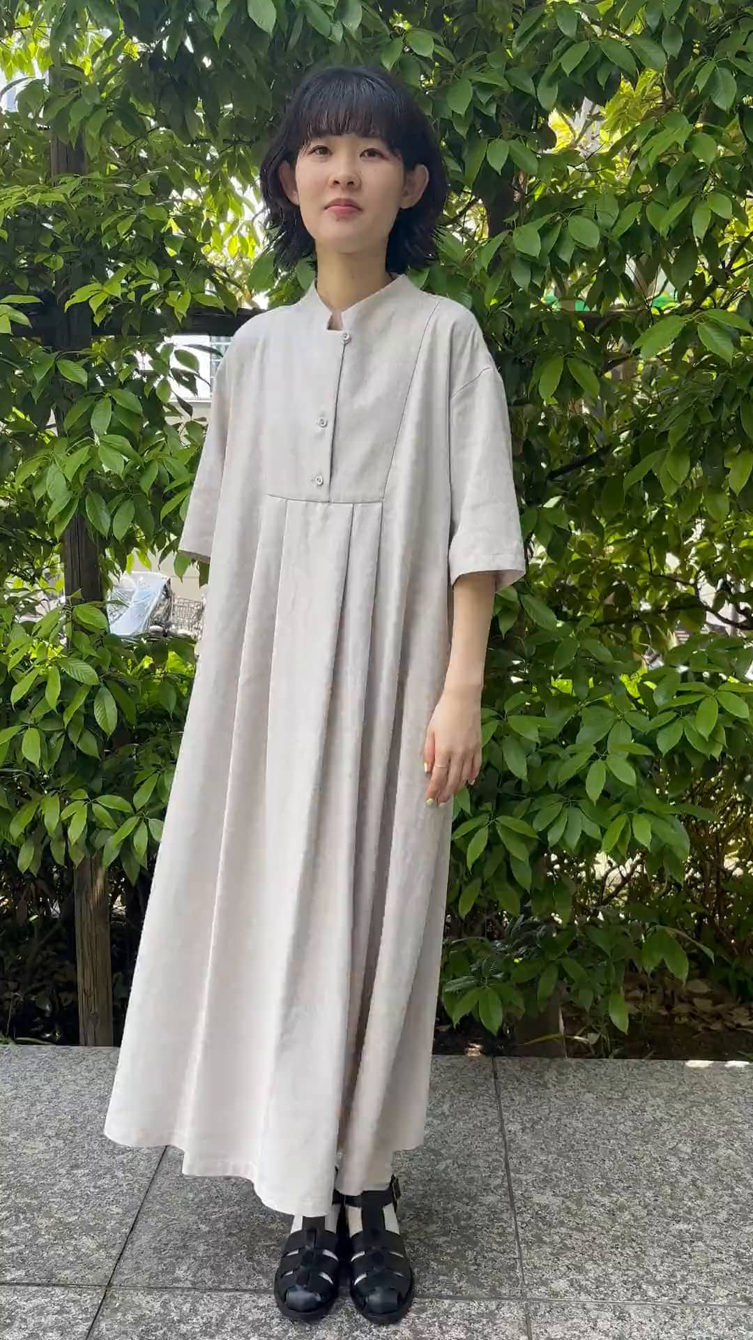 リネンのさらっとした風合いにポリエステルが入っているのでシワになりにくいです◎