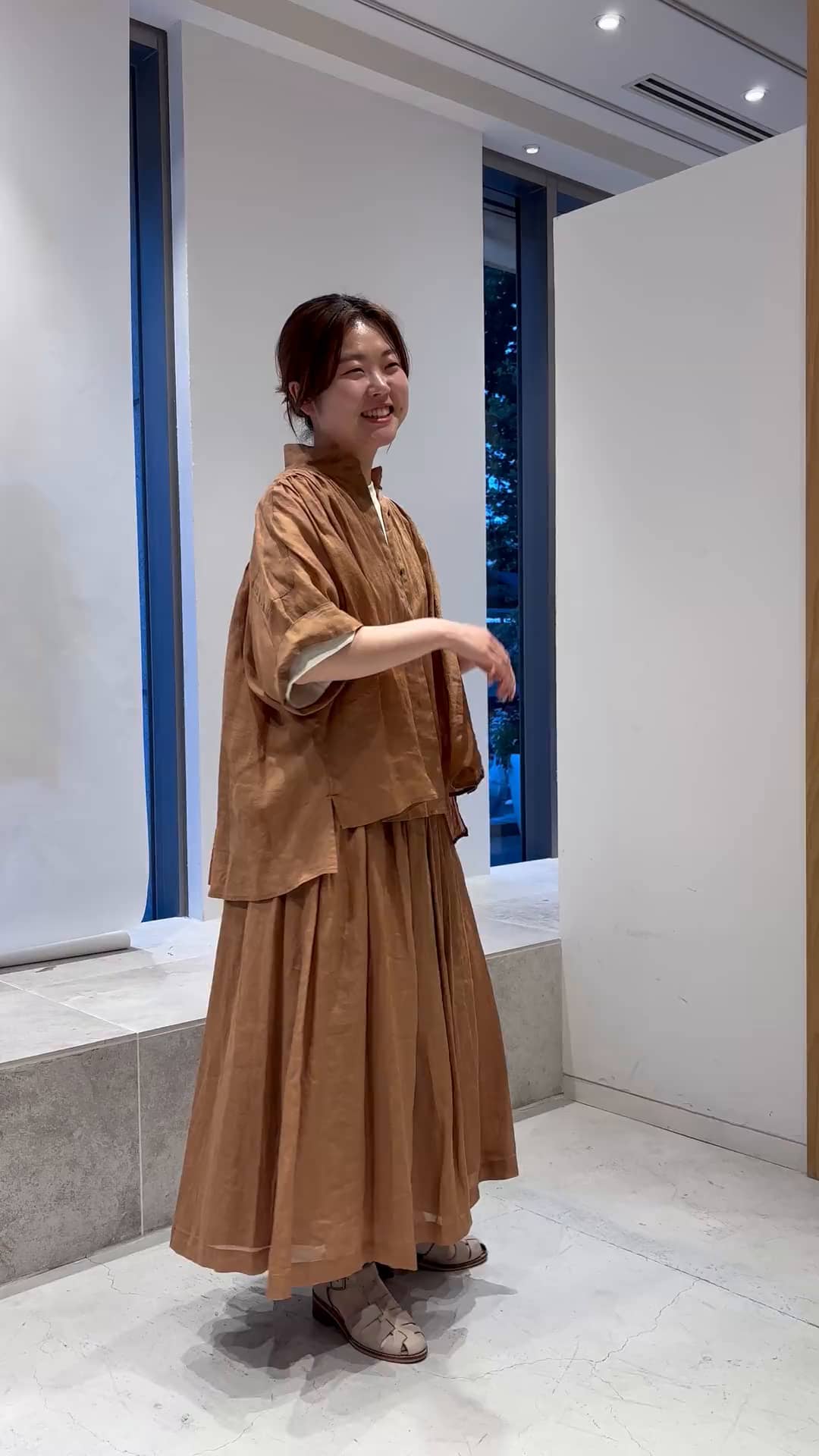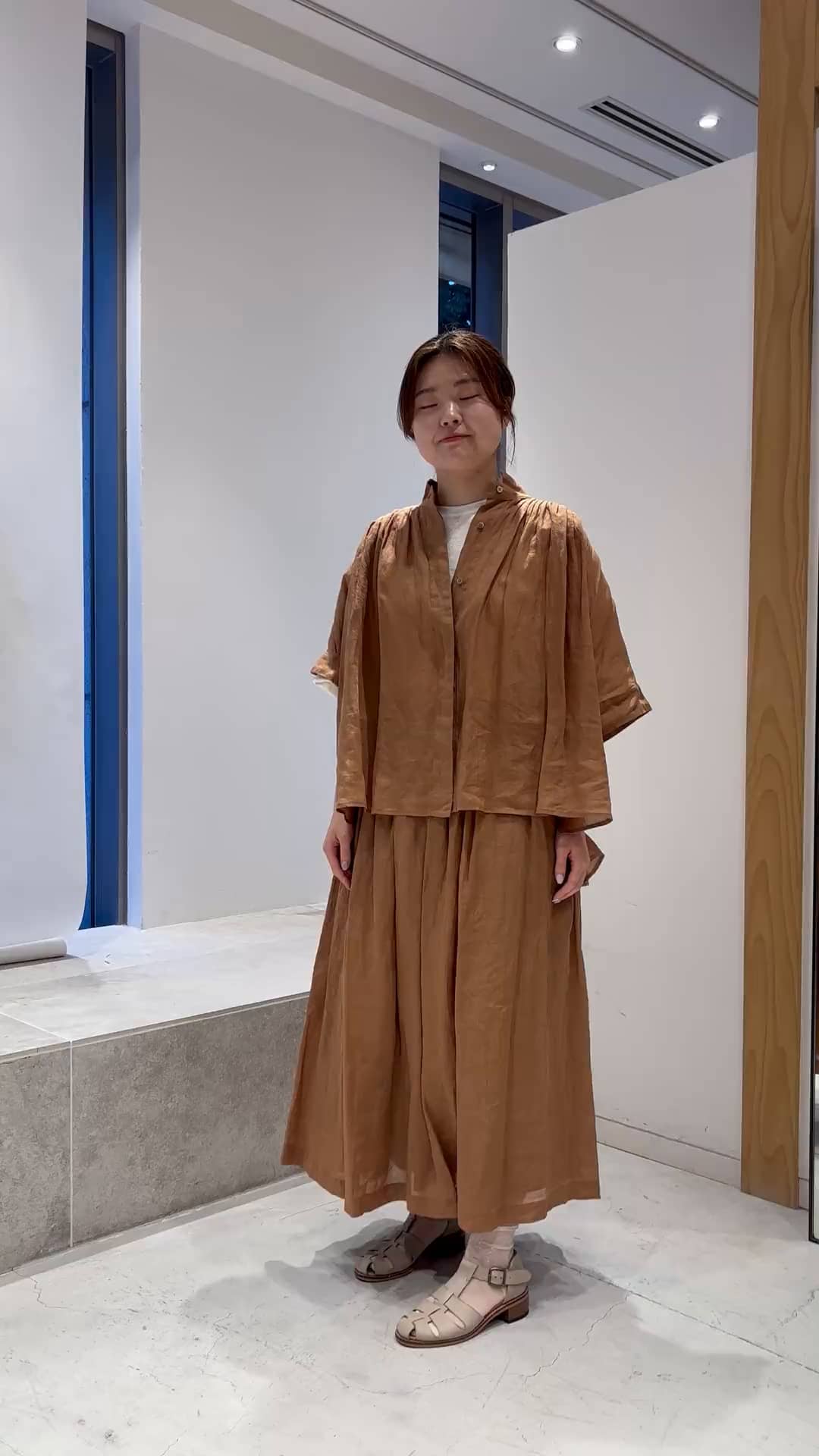 夏の定番素材のラミーは麻の透け感を上品に演出してくれます。トップスはブラウスとしても、前開きのセットupでゴージャスにコーディネートも素敵です。