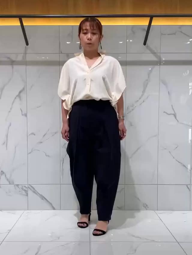 合わせたのは、ボックスタックが立体感を演出するバレルシルエットのパンツ。程よいゆとりとハリ感のある素材で、美脚見えとリラックス感を両立!着心地と着映えを両方叶えるコーディネートです。