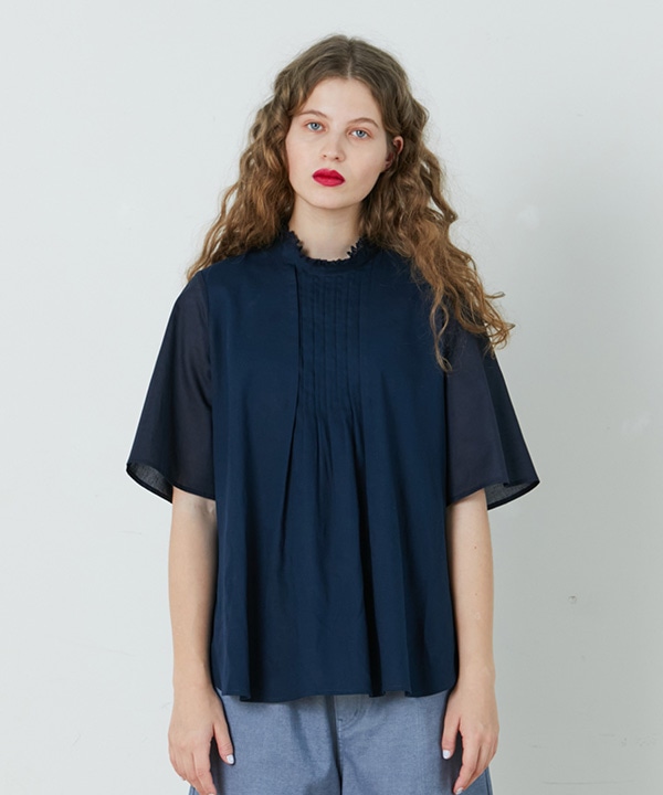 インナーに合わせたブラウスは、一枚で着ても重ね着しても使いやすい便利なアイテムです。