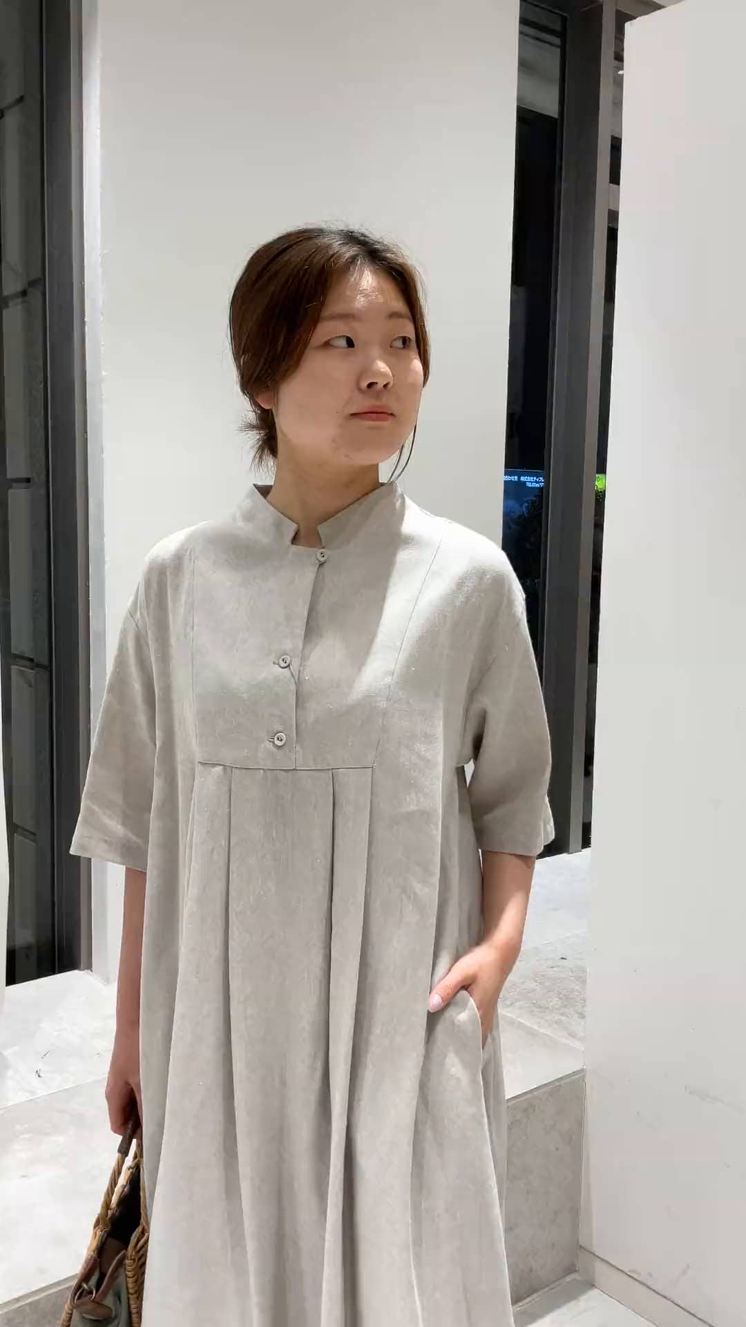 |2BUY10%OFF・3BUY20%OFF|エステルリネンヘリンボーンAラインワンピース