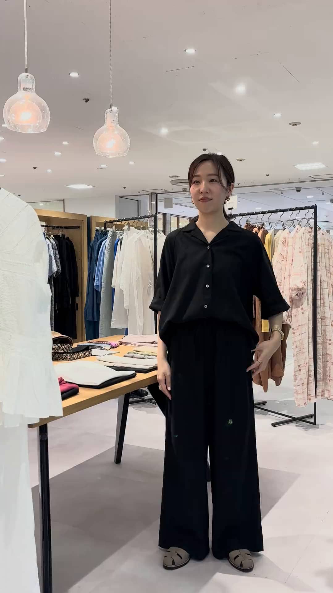 LOISIRのセットアップコーデ♫フロントをインすることで、オールインワン風な着こなしに!レーヨンリネンの素材で、落ち感やシルエットがとてもきれいです✨