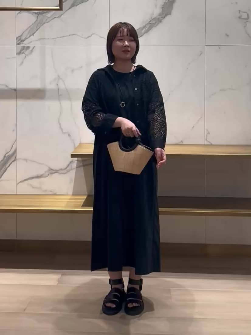 使用したブラックワンピース。ストンとしたシルエットに切り替えや後ろのギャザーで立体感をプラスし、