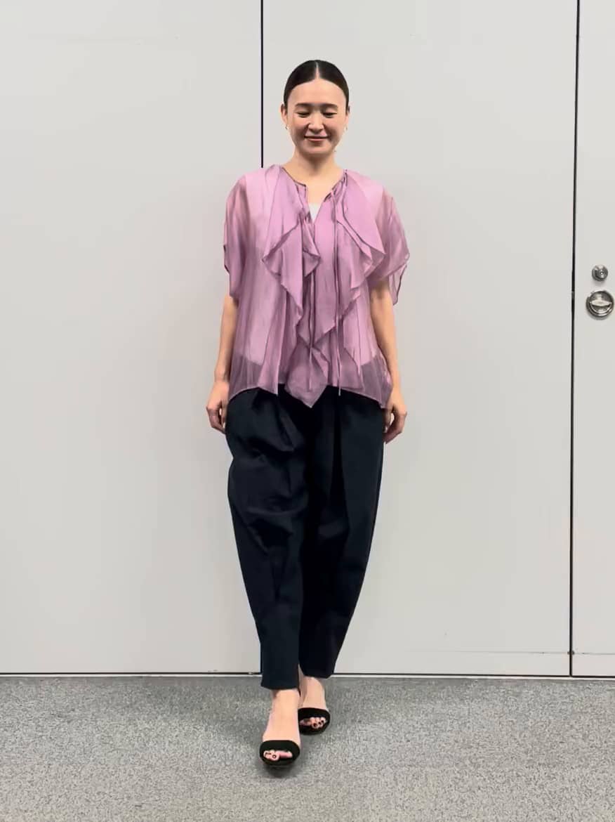 甘めのフリルとシアーな透け感が女性らしさを引き立てるドラマティックなブラウスです!