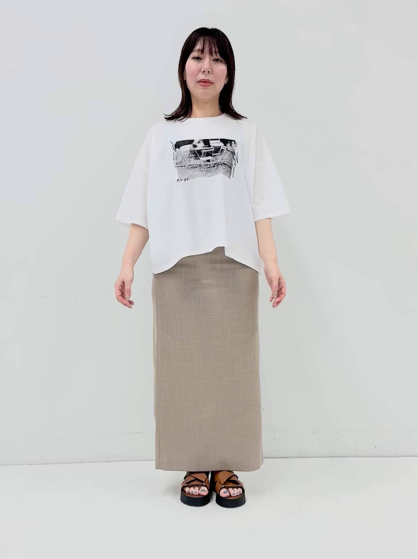 愛いフォトTは、ラフなのにどこか大人っぽい一枚。シンプルながらプリントが程よいアクセントになって、さっと着るだけでサマになります。ストンと落ちるタイトなラインに、控えめなウエストベルトのデザインが洗練された