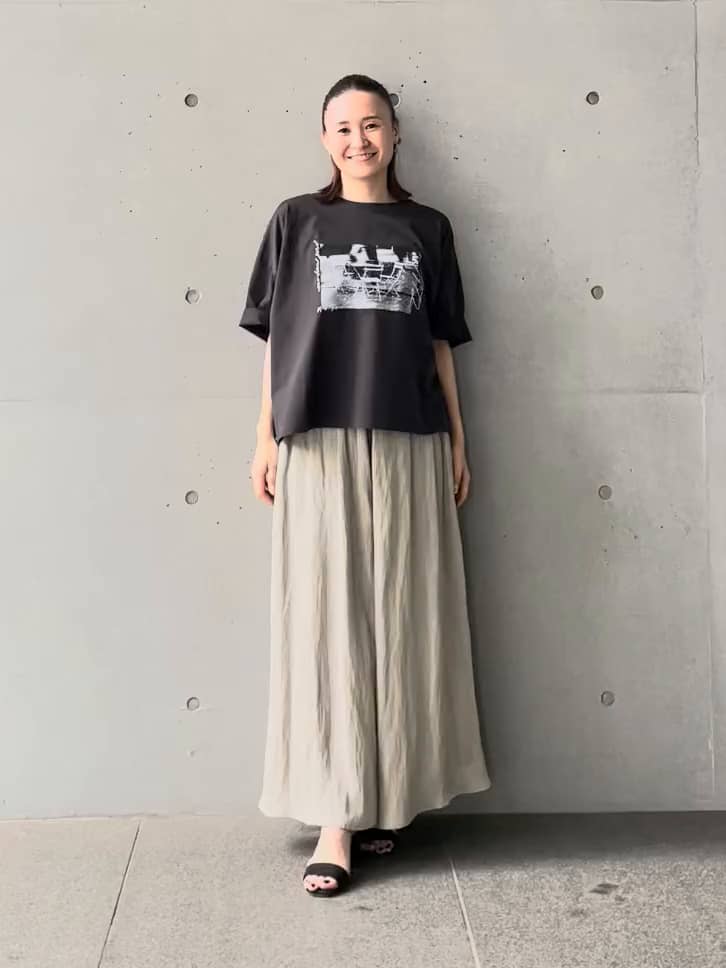 チャコール×グレージュの大人カラー配色で、品良く軽やかな着こなしが完成します。