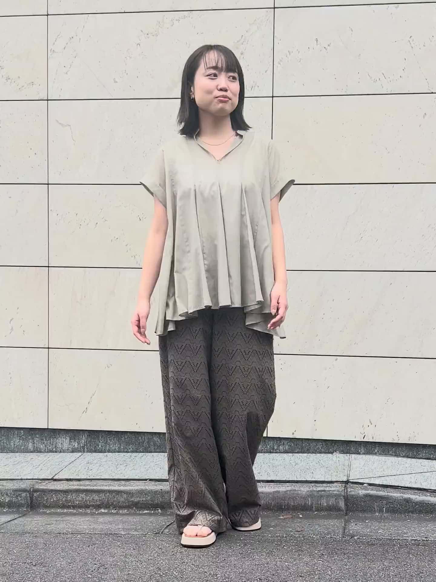 カーキトーンでまとめることで、ナチュラルなのに華やかさもある、大人の夏スタイルが完成します。