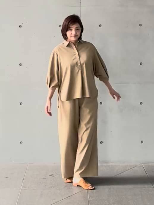 ブラウンベージュのワントーンでまとめて、大人の上品カジュアルを演出しました。