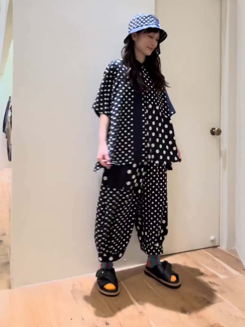 大小2種類のドットに無地の生地が部分的に入り、切り替えにこだわったアートな雰囲気のシリーズです。