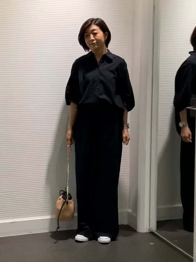 ブラウスは袖や背中にボリュームをもたせつつ、襟と前立ては細めに仕上げているので、すっきり見えが叶います◎