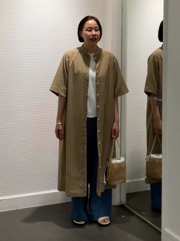 コットンライクな風合いとUVカット機能を備えたリサイクルポリエステル素材のハーフスリーブシャツワンピースは、