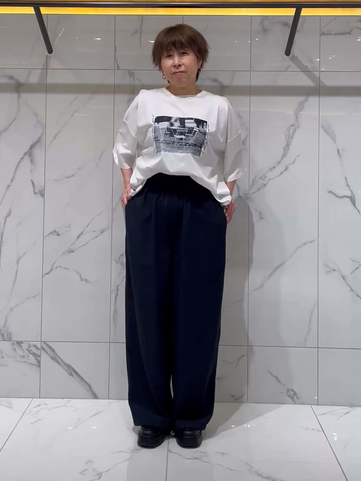 ほどよくゆとりのあるリラックス感と短め丈のバランスが絶妙。ワイドボトムとも好相性で、
