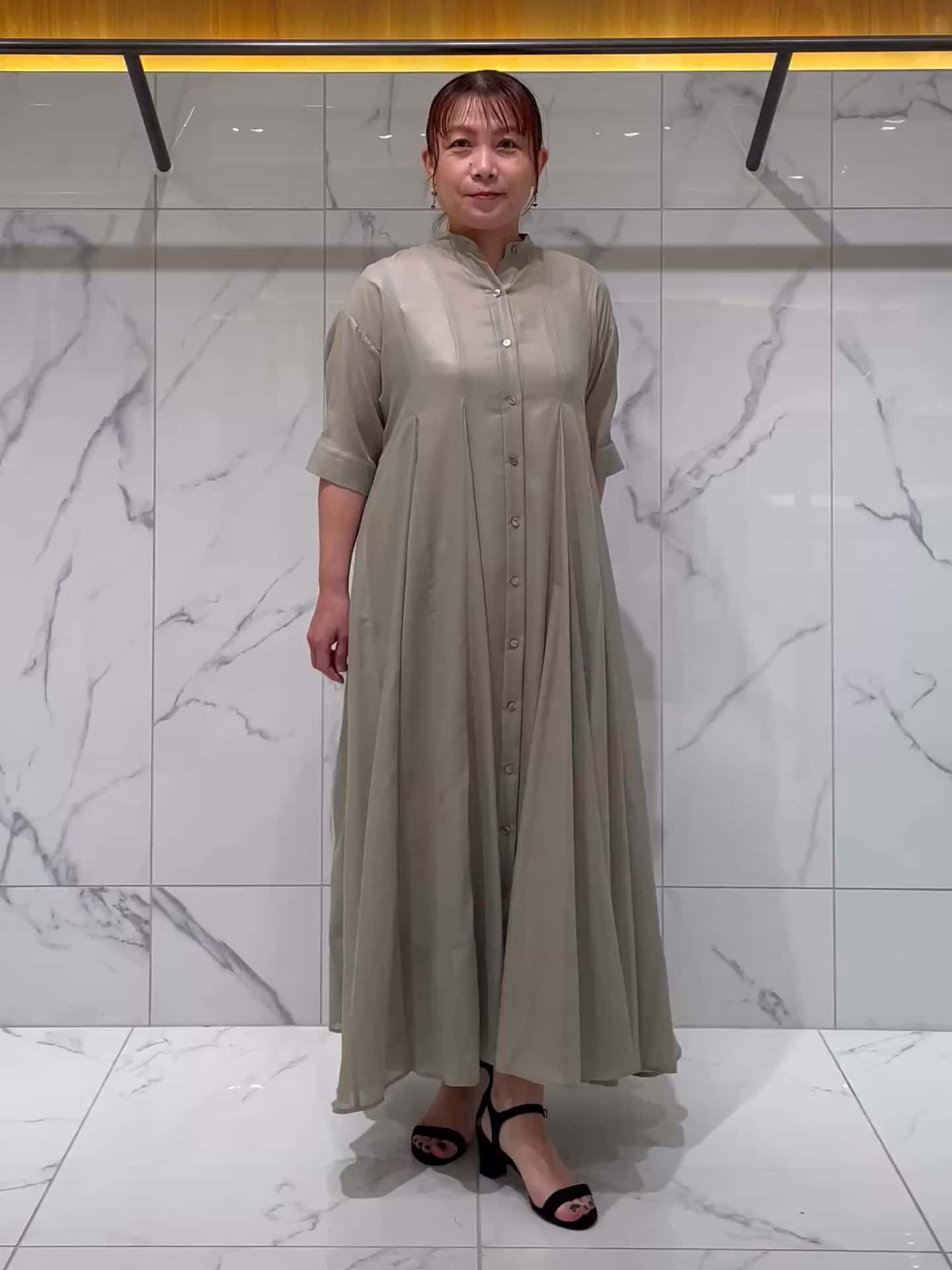 軽くて落ち感のあるポリエステルボイル素材が、動くたびにふんわり揺れるカーキのワンピースは