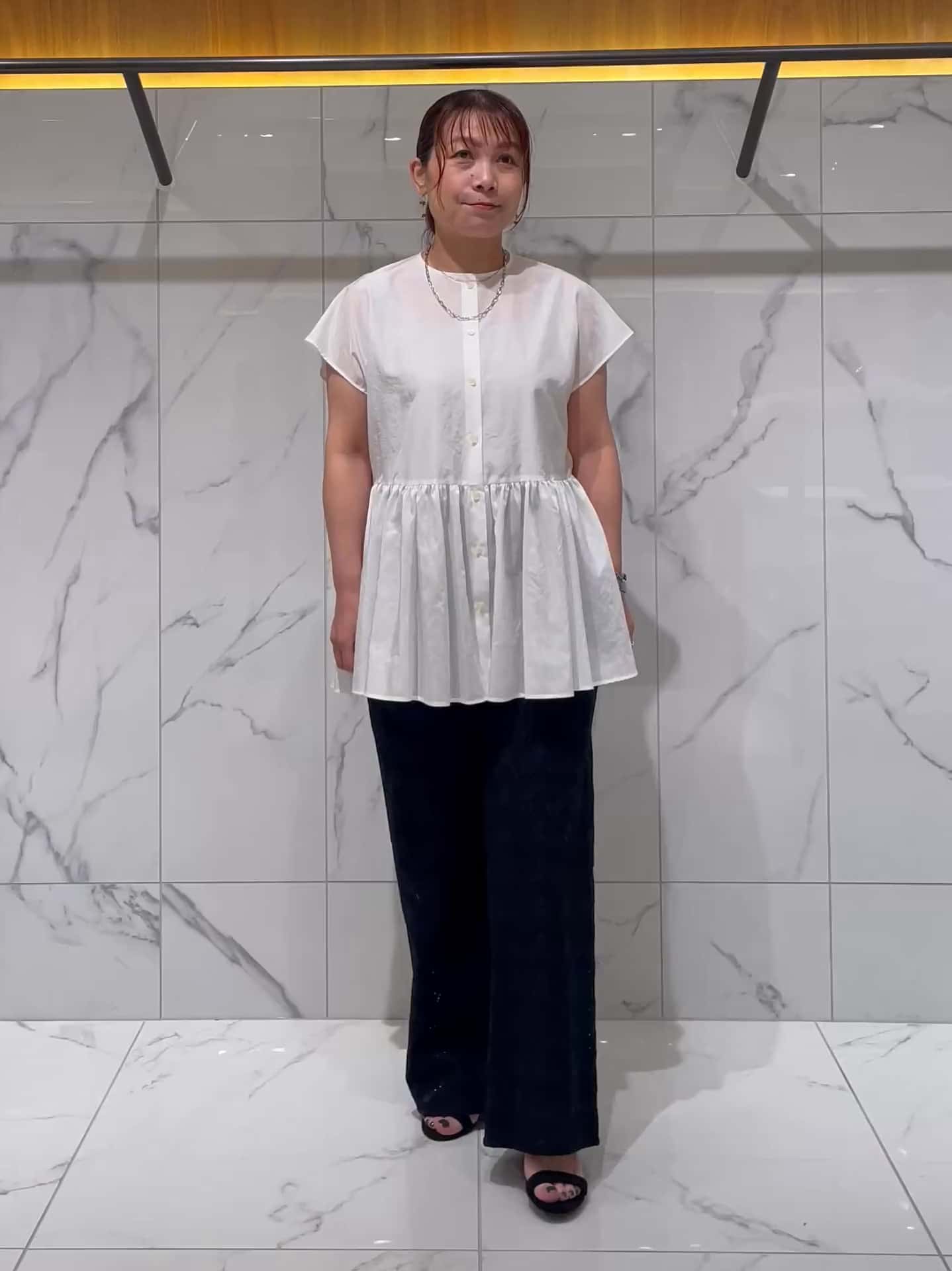 ソフトで軽やかな素材感のホワイトブラウスは、ウエストにたっぷりギャザーを入れたほんのりガーリーなデザイン。