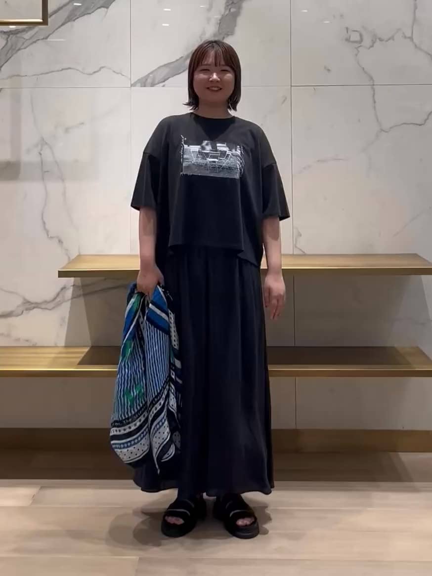 今回は、落ち感がきれいなブラックのワイドパンツを合わせて、シンプルだけどニュアンスのあるスタイリングにしてみました。
