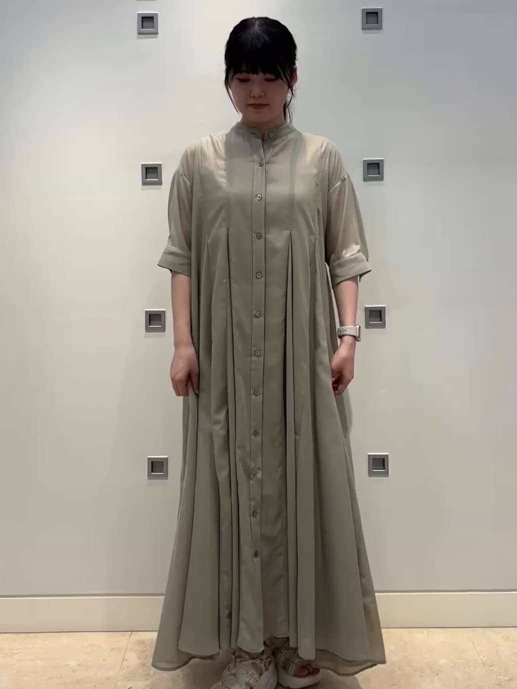切り替えをふんだんに入れたワンピース。生地が軽く落ち感があるのでおさまりが良く、動いたときにひらひらと表情が出て気分が上がります♪夏に涼しく着られる1枚です。53FFA180 2/① カーキ